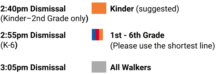 *If you have children in both grades, dismissal time is determined by the oldest student.